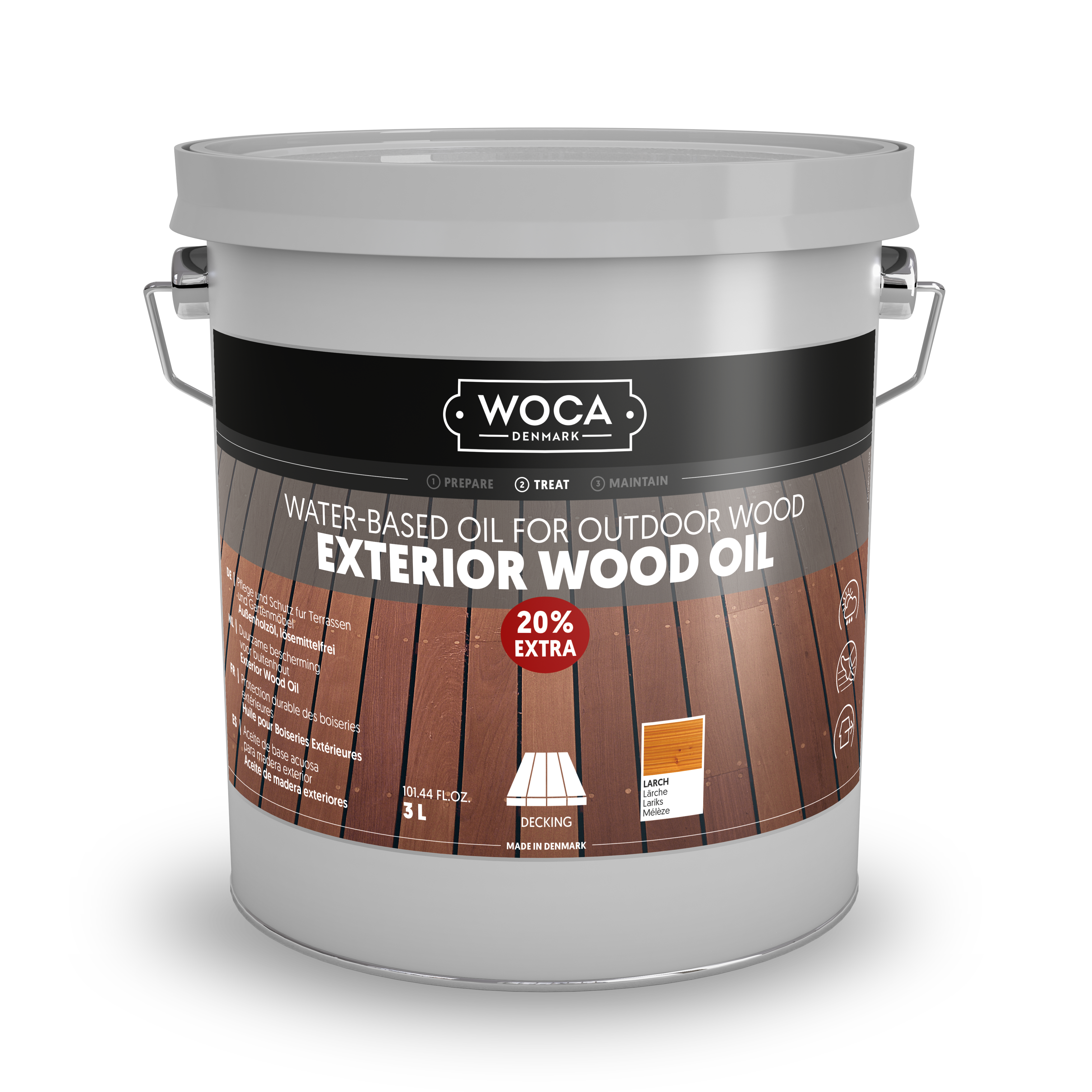 WOCA Exterior Wood Oil est utilisé à l’extérieur pour le traitement de base