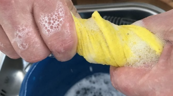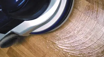 À la fin, frotter une nouvelle fois l’ensemble du sol avec un tampon blanc sec pour obtenir une brillance soyeuse uniforme et mate.